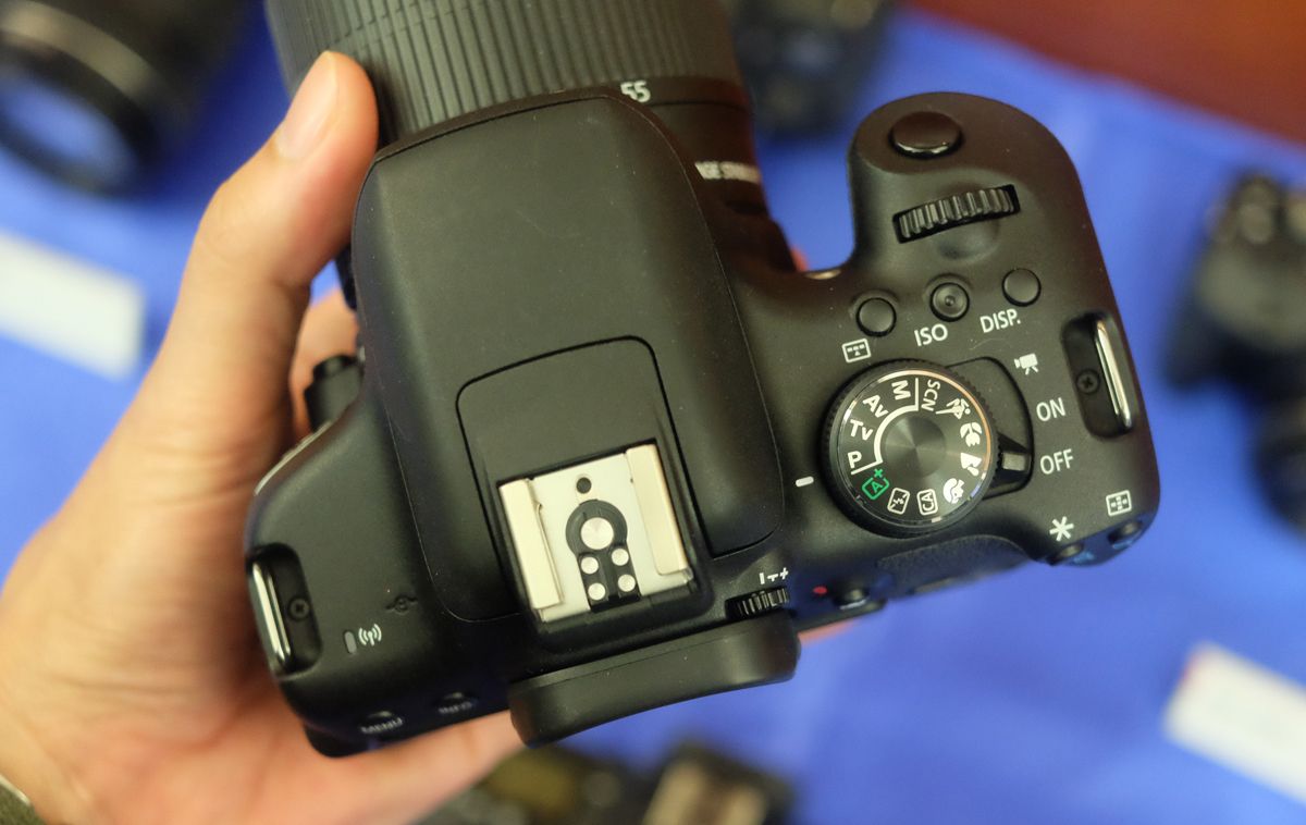 Vẫn giống như các model thế hệ 3 số trước, 750D phía trên chỉ có bánh xe chế độ, nút nguồn, một số nút chỉnh nhanh thông số.
