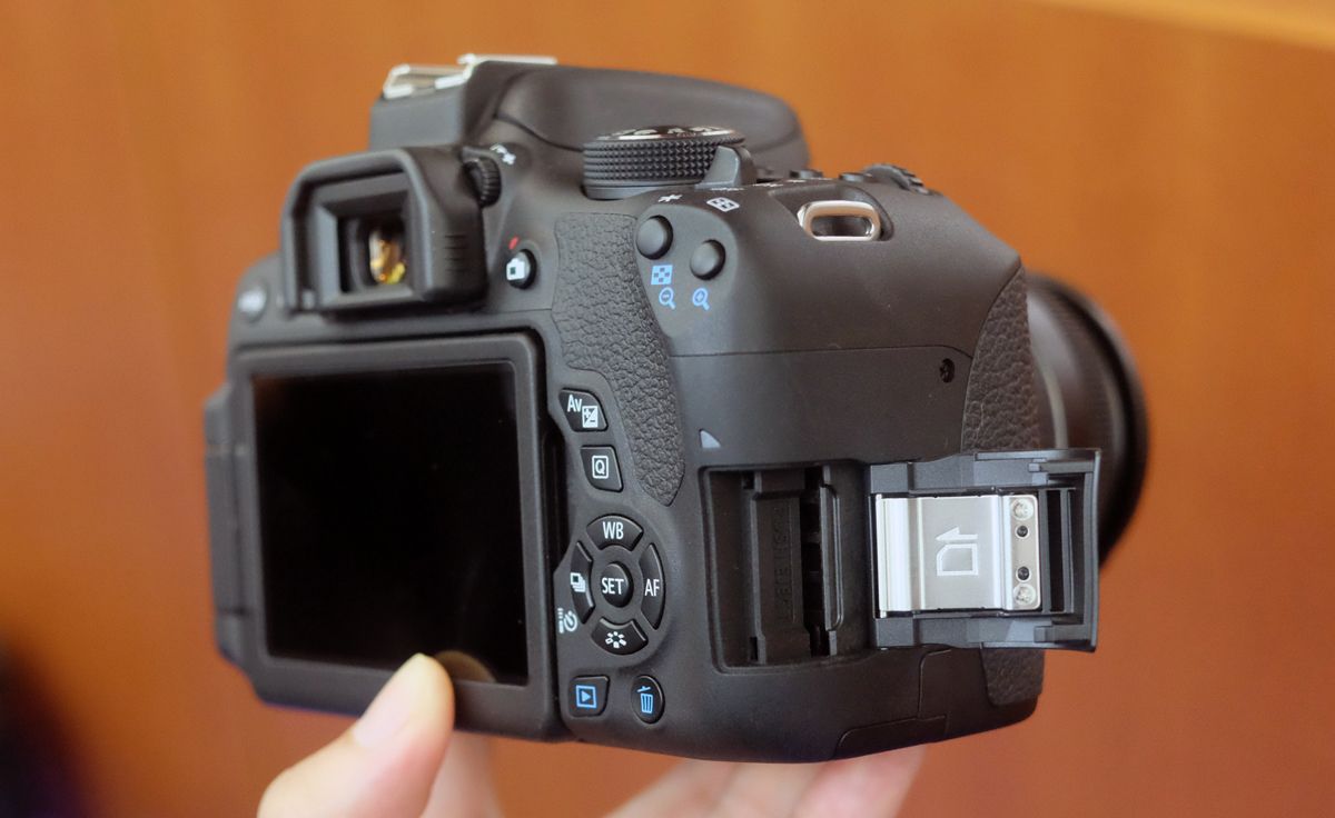 Phía sau máy ảnh là màn hình cảm ứng 3 inch độ phân giải 1,04 triệu điểm ảnh. Các tính năng khác trên hai máy DSLR mới của Canon còn là tích hợp Wi-Fi, NFC và hỗ trợ quay video Full HD 1.080p với 30 khung hình/giây