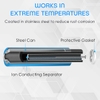 Thời hạn sử dụng 10 năm ( 7 năm đồi với loại pin 9V ) Có thể hoạt động ở nhiệt độ cực cao. Thủy ngân và cat mi ( cadmium ) không chì. Thiết kế bên trong pin có lớp ngăn kép chống rò rỉ nên sẽ không có tình trạng chảy nước ra ngoài môi trường.