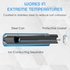 Thời hạn sử dụng 10 năm ( 7 năm đồi với loại pin 9V ) Có thể hoạt động ở nhiệt độ cực cao. Thủy ngân và cat mi ( cadmium ) không chì. Thiết kế bên trong pin có lớp ngăn kép chống rò rỉ nên sẽ không có tình trạng chảy nước ra ngoài môi trường.